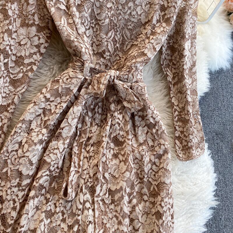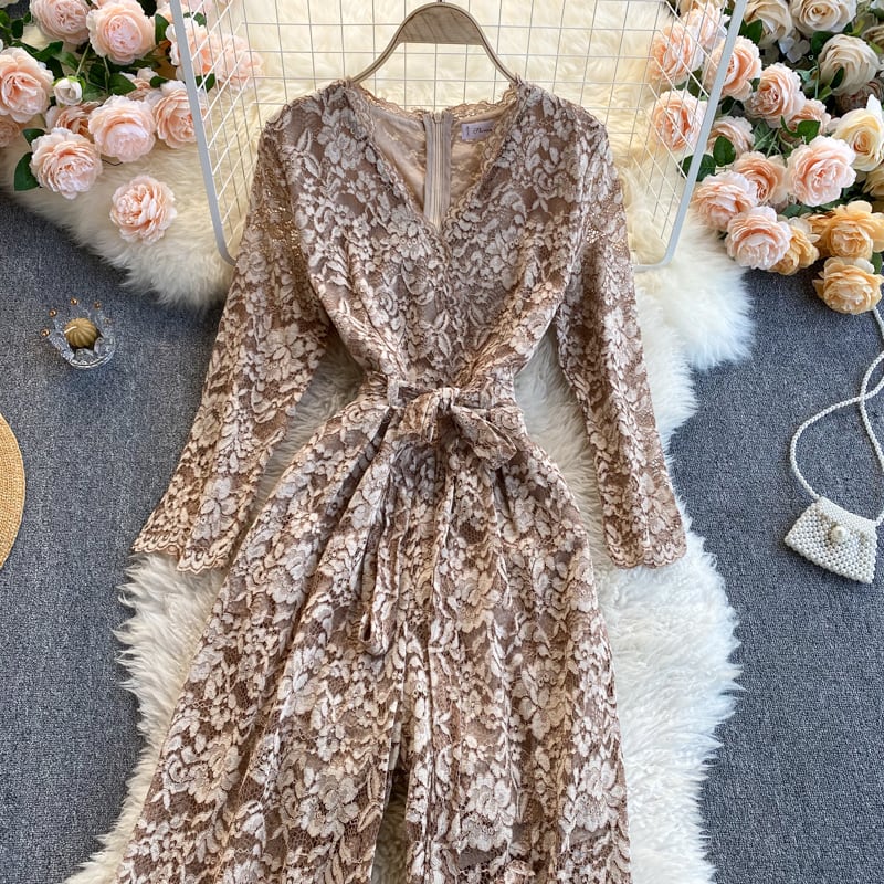 オールインワン パンツスタイル パンツ つなぎ リボン ウエストリボン 流行 トレンド レトロ 新作 ブラウン S M L XL 2XL 新しい 新作 レース ジャンプスーツ Vネック ネクタイ 薄手 ズボン アメリカンスタイル 外国風 セクシー Vネックレース 長袖 ロングスリーブ ウエストスリミング レースアップ ワイド レッグパンツ大人可愛い モダン カジュアル フェミニン 二次会 パーティー お呼ばれ デート メンズライク 外出 通勤 モード系 コケティッシュ ラブリー 20代 30代 40代