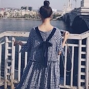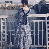 ギンガムチェック柄のワンピース。