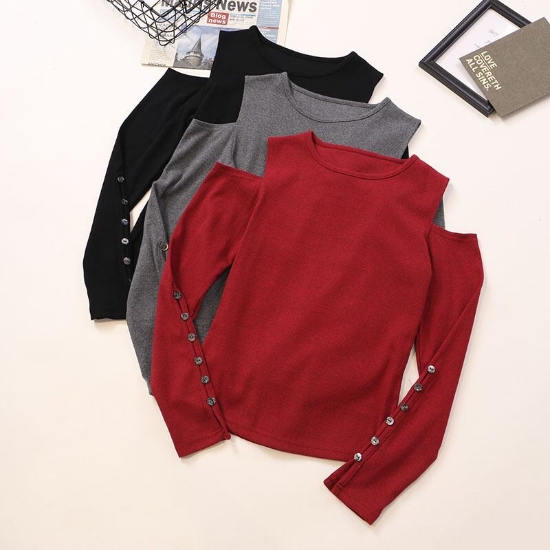 オープンショルダーニット 長袖 ラウンドネック レディース 飾りボタン 肩見せ プルオーバー 薄手ニット 春秋 通勤 通学 オフィスカジュアル ラフ ニットカジュアル 休日 公園 デート お買い物 クール 大人っぽい かっこかわいい 大人女子 抜け感 トレンド タイト 着やすい 重ね着 着まわせる レイヤード シティカジュアル 韓国 韓国ファッション 韓国アイドル 色違い 多色展開 低価格 低予算 高コスパ ヘビロテ服 簡単コーデ 無地 単色 合わせやすい 短め丈 リラックス ワンマイルスタイル お出かけ