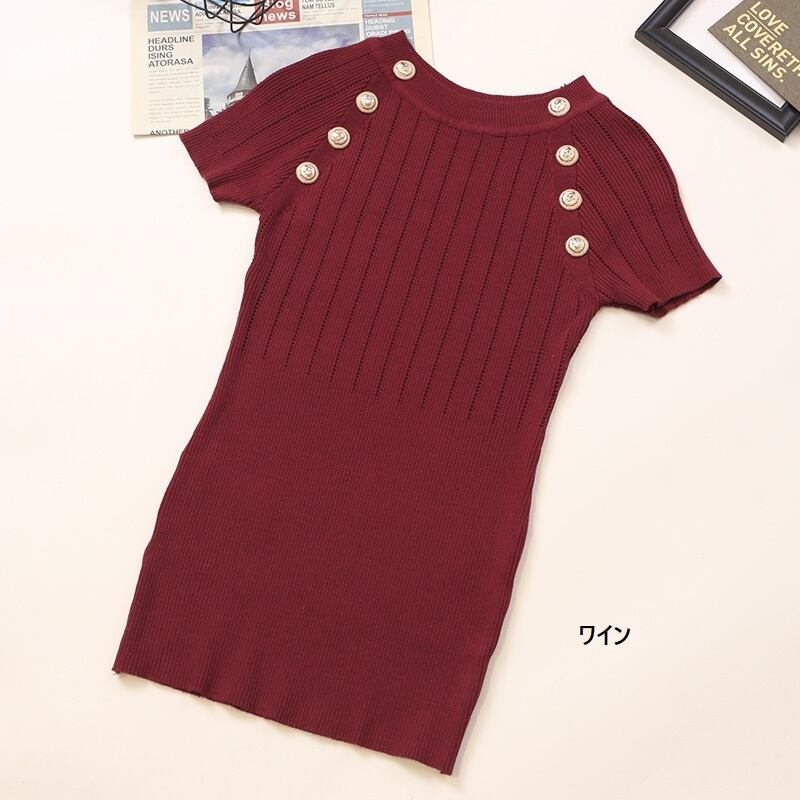 ニットミニワンピ 半袖 ラウンドネック 飾りボタン レディース 単色 無地 ニュアンス色 差し色 ストライプ織 襟リブ 薄手 春夏 夏ワンピ 大人っぽい ボディコンシャス かっこかわいい マリンテイスト 休日 カジュアル ラフ 柔らか素材 タウン仕様 おしゃれ トレンド デート お買い物 合コン 女子会 飲み会 韓国 韓国服 韓国ファッション 韓国アイドル 低価格 お買い得 低予算 高コスパ 着まわせる 着やすい プルオーバー 値段重視 10代 20代 女っぽい 大人 通学 オフィスカジュアル