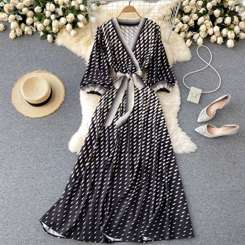 ワンピース レディース Aラインドレス ミモレ丈 ロング丈 袖あり 長袖 パフスリーブ Vネック 襟無し ハイウエスト スリム フレア 細身 大人可愛い きれいめ 大人 上品 ラブリー キュート おしゃれ 大人女子 こなれ感 エレガント セレブ ウエストリボン カシュクール 結婚式 二次会 披露宴 10代 20代 30代 OL 通勤 学生 通学 デート お出かけ 女子会 パーティー イベント リゾート 韓国系 オルチャン ファッション コーデ スタイル モテ 体系カバー 美脚 脚長 インスタ映え ブラック