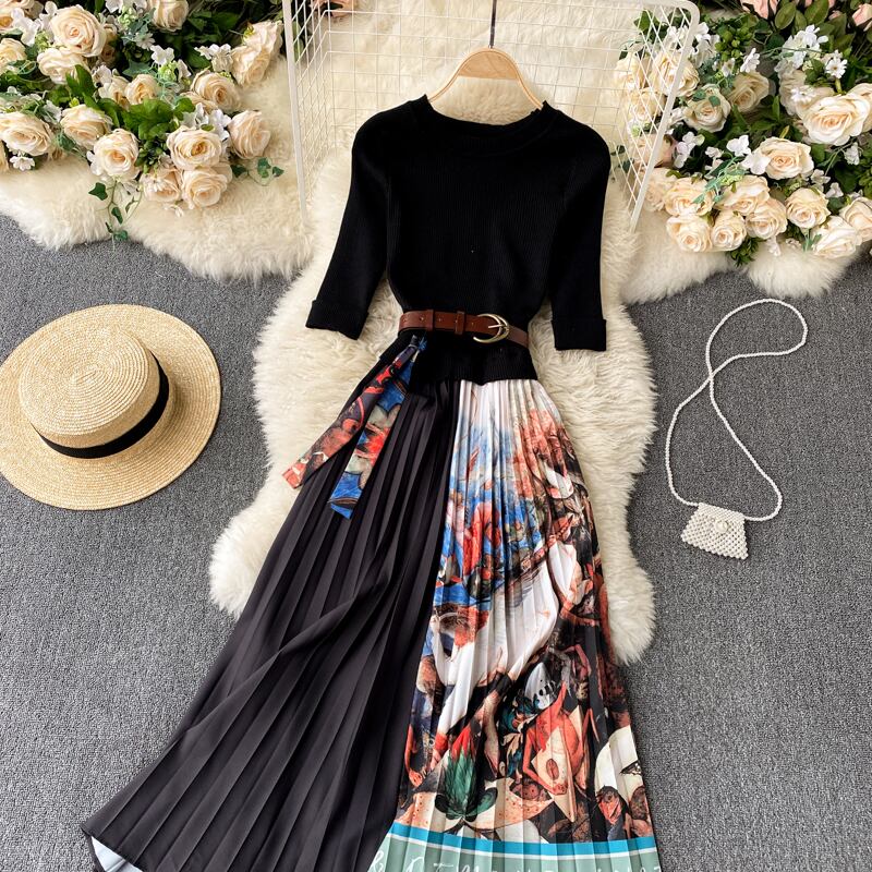 ワンピース レディース フェイクワンピ ロングスカート プリーツスカート ロング丈 ロング 袖あり 七分袖 7分袖 ラウンドネック 襟なし 切り替えデザイン 異素材MIX アシンメトリー ウエストマーク ベルト アニメ コスプレ キャラクター 黒 ブラック かわいい 大人可愛い 大人 大人女子 きれいめ おしゃれ お洒落 10代 20代 学生 通学 デート お出かけ 女子会 休日 イベント 普段使い カジュアル こなれ感 ラフ ルーズ 抜け感 ゆったり ゆる オフ会 パーティー 個性的 主役級 存在感