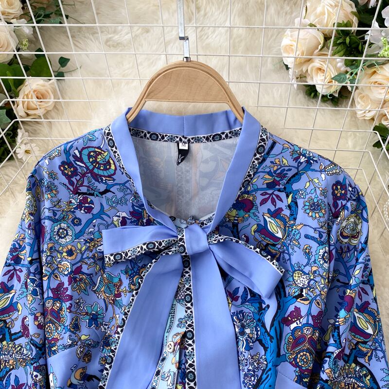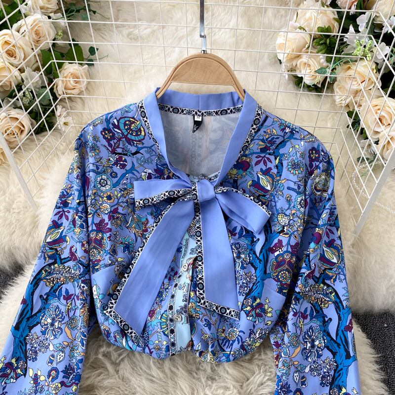 トップス レディース 2点セット ブラウス 前開き 袖あり 長袖 ボウタイ 襟無し スカート プリーツ スリム 細身 かわいい 大人可愛い きれいめ 大人 上品 おしゃれ 大人女子 こなれ感 セクシー エレガント 10代 20代 30代 OL 通勤 学生 通学 デート お出かけ 女子会 パーティー イベント リゾート 着回し 普段使い 重ね着 韓国系 オルチャン ファッション コーデ スタイル 楽ちん モテ インスタ映え ブルー アニマル柄 花柄 ボタニカル プリント ゾウ ラクダ 馬車 馬 クジャク