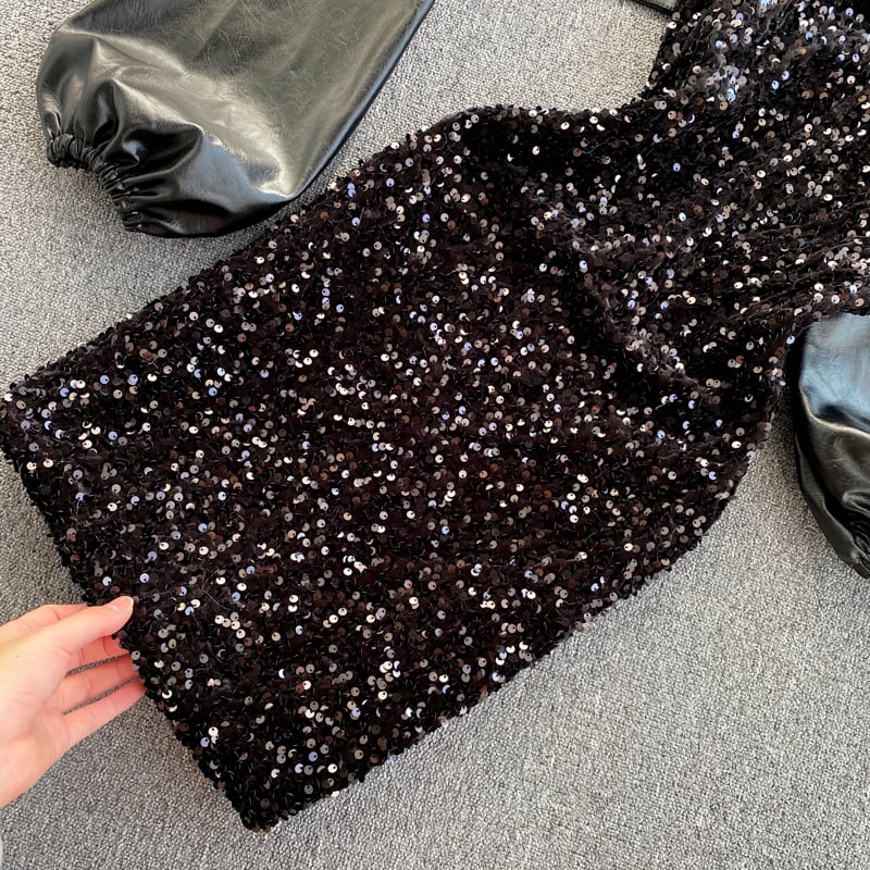セットアップ レディース ジャケット ワンピース キャミワンピ ひざ丈 膝丈 ノースリーブ 長袖 ボリューム袖 襟付き スタンダードカラー ボタン スパンコール キラキラ 上下セット 2点セット 光沢 黒 ブラック かわいい 大人可愛い 大人 大人女子 きれいめ おしゃれ お洒落 かっこいい 個性的 マニッシュ 存在感 主役級 クール モード系 10代 20代 30代 学生 通学 デート お出かけ 女子会 休日 イベント カジュアル こなれ感 上品 エレガント セクシー パーティー 誕生日 成人式