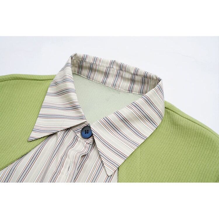 ブラウス トップス トップ ドッキング 2ウェイ ストライプ 襟付き グリーン S M L XL デザイン センス 新作 初秋 冬 トレンディインポート プチプラ ランキング 大人女子 流行 トレンド シャツ レディース フェイクツーピース 新しい コントラストカラー ストライプシャツ 女性 レディースファッション スタッキング オリジナル シック フレンチ モダンモード系 かっこいい ラグジュアリー 2タイプ 通勤 通学 OL 20代 30代 40代 50代 上位 インポート 人気デザイン 素敵 通学