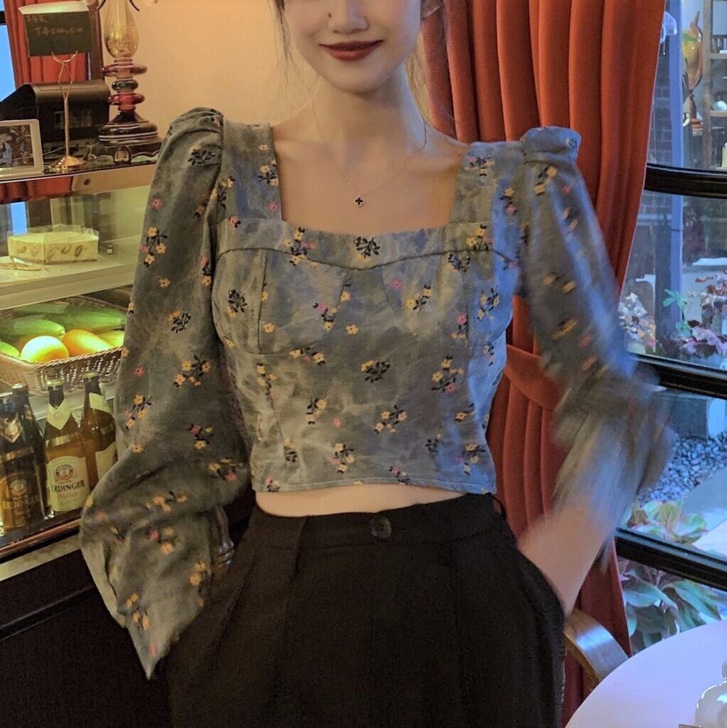 トップス デニム デニム素材 フラワープリント 花柄 長袖 ロングスリーブ ブルー フレンチ スクエアネック バブル長袖 デニムシャツ レディース 秋冬 レディースファッション 新しい 新作 レトロ ファッション ウエスタンスタイル ショート フローラル ファッショナブル 流行 トレンド 人気 レトロデザイン カジュアル お呼ばれ 着回し 重ね着 デート メンズライク 外出 お出かけ パーティー イベント 二次会 発表会 インポート プチプ ラフ お出かけ 大人かわいい ワンサイズ インポート プチプラ