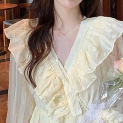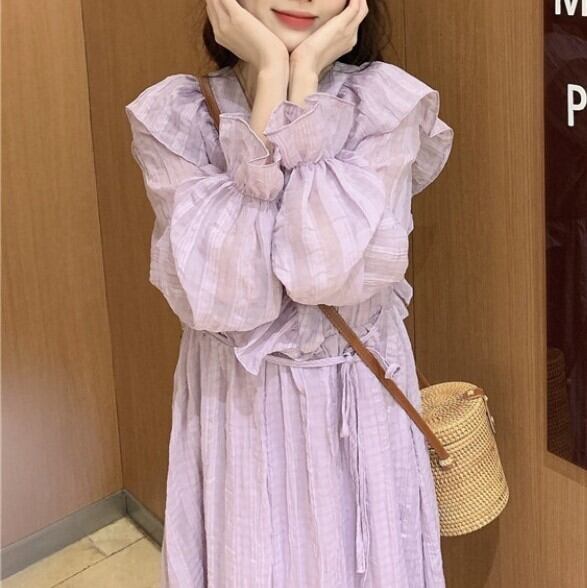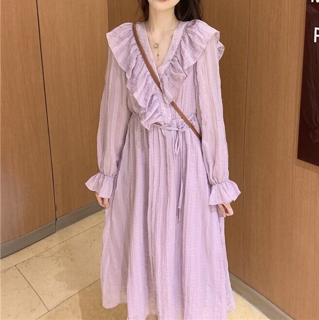 ドレス ワンピース ワンピ シースルー パフスリーブ 長袖 ロングスリーブ 秋 冬 流行 トレンド レトロ トレンディ インポート プチプラ ランキング 大人かわいい レース フリル 優しい 2カラー イエロー パープル 上品 気品 モダン パーティー イベント 二次会 発表会 女性 レディースファッションAライン Vネック 妖精 フェアリー お呼ばれ ウエディング デート お誕生日 特別な日 カジュアル ドレスアップ オトナモード 大人女子 インスタ映え 映える 萌え モテメンズライク インポート