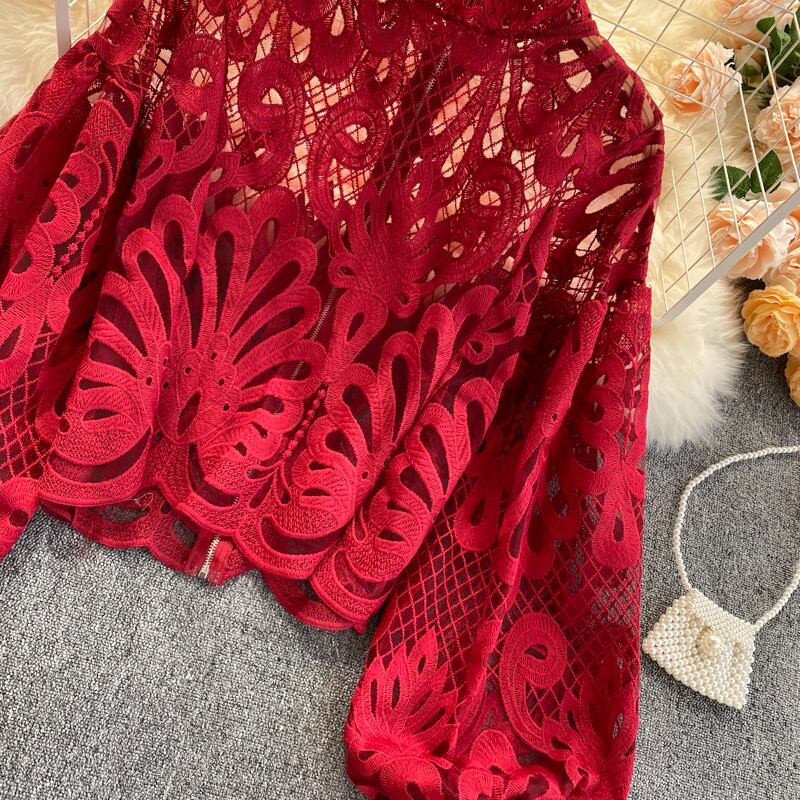 ランタンスリーブレースブラウス 長袖無地ブラウス バックファスナー 通勤 10代 20代 30代40代 ホームパーティー 通学 ショートブラウス パーティー 買い物 デート 女子会 ショート丈 総レース ホワイト ブラック ピンク アプリコット レッド 長袖 シャツ 長袖無地 無地レースブラウス 長袖ブラウス レース ショートブラウス 後ろファスナーブラウス ランタンスリーブ レースショートブラウス ランタンスリーブ 5色 リゾート 秋長袖 レースランタンブラウス ミニ丈レース 秋服 総レースランタン