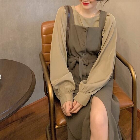 上下セット セット ワンピース ワンピ トップス 長袖 ロングスリーブ 秋 冬 トレンディ インポート プチプラ ランキング 大人女子 かわいい カジュアル お出かけ ストリート 重ね着 着回し トレンディ インポート プチプラ ランキング 大人シック レディースファッション 新しい 新作レトロ ストラップドレス ウエストスリム スカート ジャンパースカート お出かけ ショッピング 買い物 外出 旅行 キャンプ 学生 通学 OL 通勤 20代 30代 ラクチン ゆるかわ 女子会 ストリート 上品 普段着