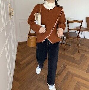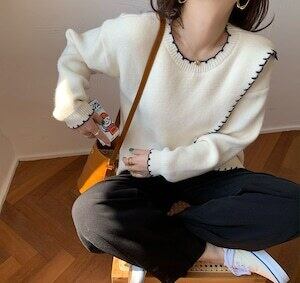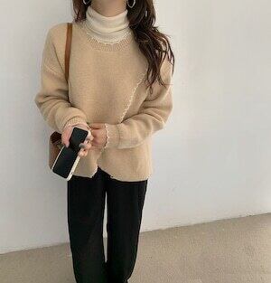 トップス セーター キレイ目 ステッチ ゆるかわファッション カジュアル ホワイト ブラウン アプリコット ミディアム丈 袖あり 長袖 ラウンドネック ストレート ワイド 大人女子 大人 上品 おしゃれ デイリーウェア レトロ レトロ風 こなれ感 ルーズ シルエット ラフ 個性的 デザイン 主役級 存在感 無地 秋 オータム 冬 ウインター 20代 10代 30代 40代 レディース 女性用 オフィス ビジネス OL 通勤 学生 学校 通学 着回し 普段使い 暖かい 防寒 ワンサイズ ¥4,842税込