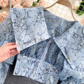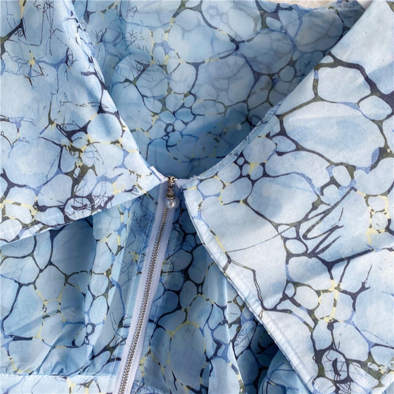 ブルゾン レディース 羽織 ジャンパー セーラーカラー 前開き ジップ パール Vネック 長袖 ボリューム袖 ショート丈 柄物 プリント柄 ハイウエスト 大人可愛い かわいい シンプル 大人女子 オシャレ きれいめ カジュアル ラフ 上品 こなれ感 ワンサイズ コンパクト 3カラー ブルー アプリコット ブラック 10代 20代 学生 通学 OL 通勤 休日 お出かけ デート ショッピング 女子会 イベント 着回し 普段使い 韓国系 ファッション コーデ スタイル 楽ちん 体型カバー おすすめ モテ 人気