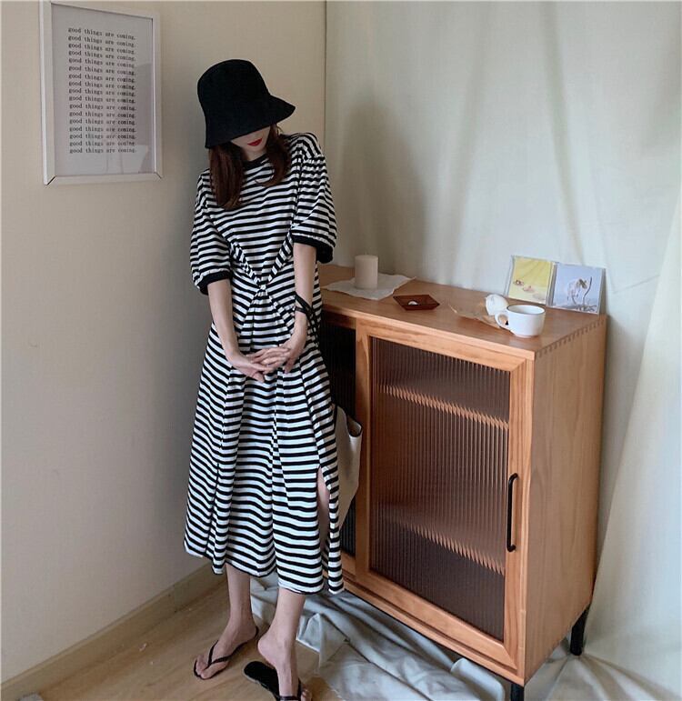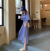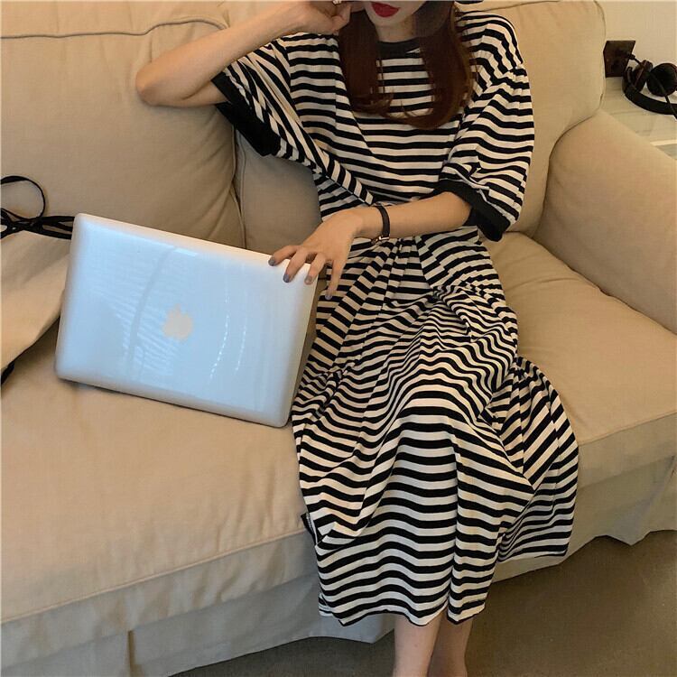ボーダーロングワンピース ワンピース フレアワンピース ロング ロング丈 袖あり 半袖 ラウンドネック フレア 綿 かわいい 大人可愛い きれいめ シンプル カジュアル 大人 上品 おしゃれ お洒落 レトロ 大人可愛い 大人女子 こなれ感 ラブリー キュート ガーリー 個性的 主役級 存在感 抜け感 柄 ボーダー 春 夏 10代 20代 30代 レディース 学生 通学 デート お出かけ 公園デビュー 女子会 休日 着回し 普段使い 重ね着 韓国系 オルチャン ゆったり ゆる 色展開 黒 ブラック ブルー