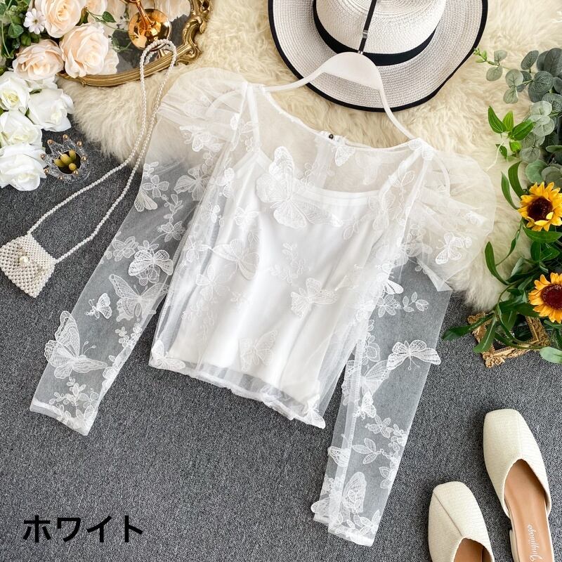 ブラウス レディース キャミソール 長袖 柄 刺繍 春 秋 細身 ストレート Iライン 透け感 シースルー かわいい 大人可愛い きれいめ シンプル カジュアル 大人 上品 おしゃれ お洒落 大人可愛い 大人女子 エレガント ラウンドネック 袖あり 薄手 白 ホワイト 黒 ブラック 赤 レッド ワンサイズ 女の子 通学 デート お出かけ 公園デビュー 女子会 休日 着回し 普段使い 韓国 韓国系 オルチャン ファッション コーデ スタイル 楽ちん モテ 新作 トレンド 流行 インスタ映え