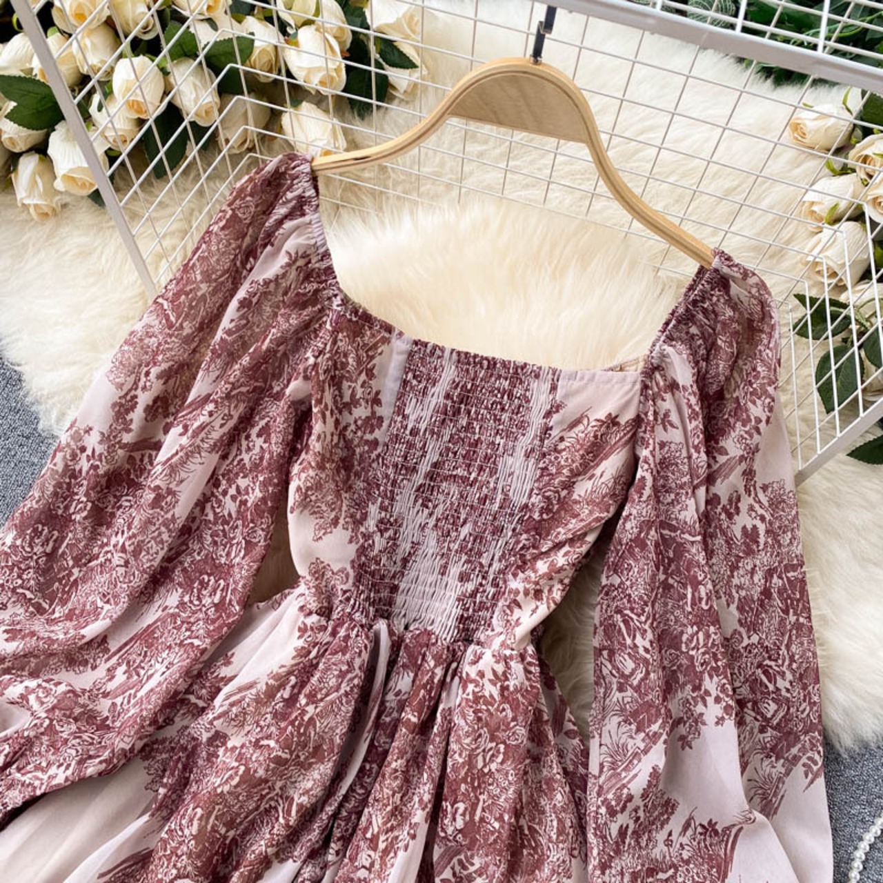 ワンピース レディース フレアワンピース ミニ丈 ショート丈 袖あり 長袖 パフスリーブ スクエアカラー 襟無し フレア かわいい 大人可愛い きれいめ 大人 上品 ラブリー キュート ガーリー おしゃれ 大人女子 こなれ感 エレガント ハイウエスト 結婚式 二次会 披露宴 10代 20代 30代 OL 通勤 学生 通学 デート お出かけ 女子会 パーティー イベント リゾート 韓国系 オルチャン ファッション コーデ スタイル モテ 体系カバー 美脚 脚長 インスタ映え ピンク 花柄 プリント レトロ
