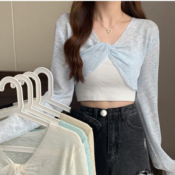 ニット セーター トップス トップ ショート丈 ショート ワンサイズ アプリコット ホワイト グリーン ブルー ブラック 女性 レディースファッション レディース 日焼け止め ブラウス 初秋 アウタースリーブ 長袖ブラウス カジュアル お呼ばれ 着回し 重ね着 おススメ デート リゾート 旅行 普段使い 普段着 かわいい クール モテ オトナモード 大人クール 大人可愛い 学生 10代 20代 30代 40代 通勤 通学 OL お出かけ ショッピング 旅行 ドライブ 5カラー薄手トレンディ 流行