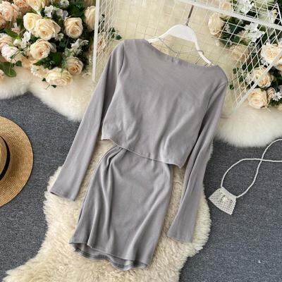 シンプルなキャミソールワンピースとカーディガンのセット♪