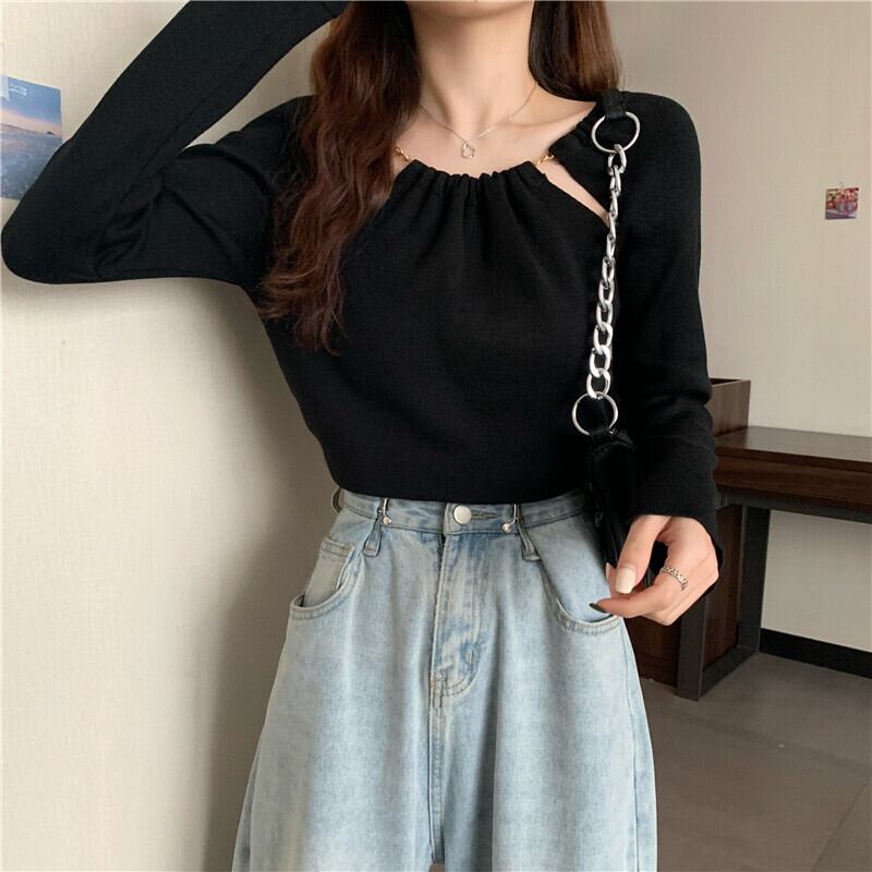 トップ トップス 長袖 ロングスリーブ 大人女子 レディース レディースファッション 秋 冬 コレクション レトロ 流行 人気 オススメ オルチャン 韓国デザイン ファッショナブル インポート プチプラ ランキング 大人クール チェーン デザイン重視 ホワイト ブラウン ブラック ワンサイズ カジュアル お呼ばれ 着回し 重ね着 大人 インナーベース 秋新しい セクシー デコルテ オールマッチ 長袖トップ お出かけ デート 10代 20代 30代 40代 ラウンドネック 普段使い 普段着 上品 きれい