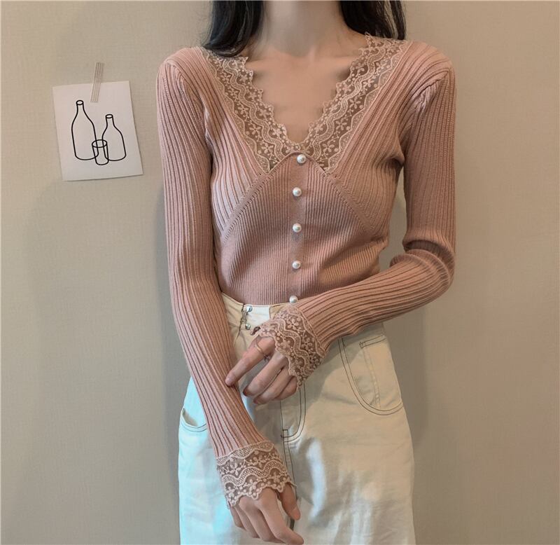 トップス 長袖 ロングスリーブ トップ レース シャツ インナーシャツ 秋 冬 トレンディ インポート プチプラ ランキング 大人かわいい トレンド 流行 レトロ 今風 新作 人気 ストリート カジュアル お呼ばれ 着回し 重ね着 普段着 普段使い ステッチ Vネック ホットスタイル セーター ボトミングセーター 女性 レディースファッション レディース 新しい アプリコット ホワイト ブルー ブラック ピンク ワンサイズ デート 通勤 通学 10代 20代 30代 40代 パールボタン おしゃれ