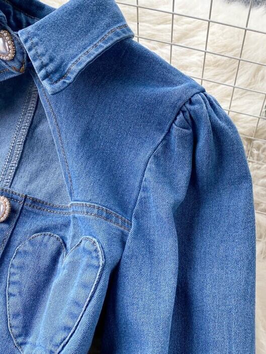 デニムショートワンピ 無地 デニム ミニ丈 ショート コットン ワンピース カッター襟 パフスリーブ 長袖 ハートボタン 胸元ハートワッペン 10代 20代 30代 スカート フレア パフスリーブデニムワンピース 綿 ハイウエストワンピース カジュアル 秋服 ホームパーティー 女子会ア買い物 通勤 通学 キュート 脇ファスナー オータムワンピース フレアスカート 長袖デニムワンピース ショートスカート ミニスカート パフスリーブフレアワンピース ハート ミニハイウエストワンピーススリムスカート デニム