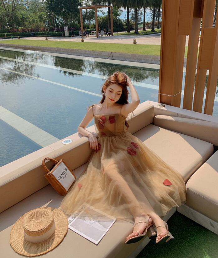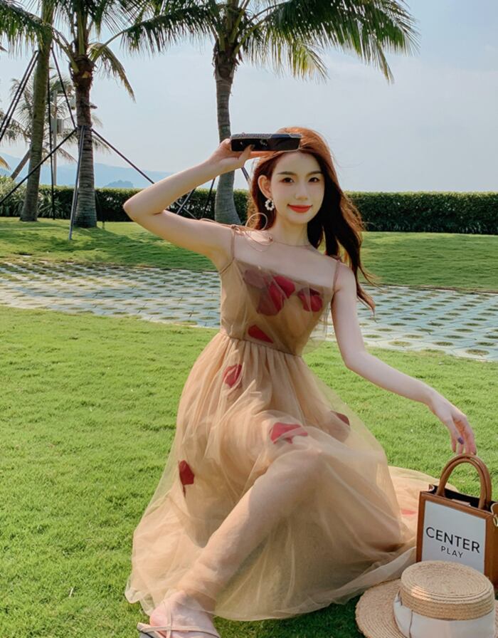 ワンピース 花びらドレス シースルー カーキ キャミワンピ チュールスカート ロング丈 チュール 袖なし ノースリーブ 襟なし レース 切り替えデザイン 透け感 リゾート かわいい 大人可愛い 大人 大人女子 きれいめ おしゃれ お洒落 可憐 シンプル ラブリー キュート ガーリー フェミニン 10代 20代 学生 通学 デート お出かけ 女子会 休日 普段使い カジュアル こなれ感 抜け感 上品 エレガント セクシー パーティー イベント フローラル 花柄 花びら フラワー ボタニカル 旅行 海 プール