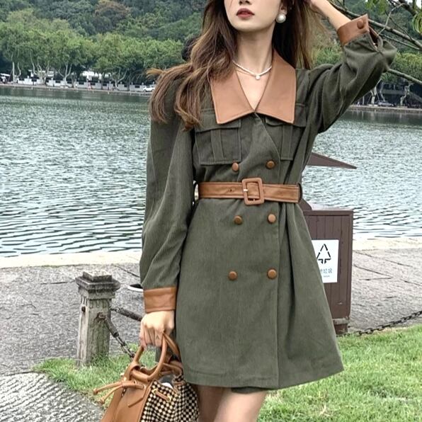ワンピース ベルト付き Aラインスカートコーデュロイ 大人綺麗 ステッチスーツスカート ベルトアクセント襟つき 人気デザイン 外国風 インポートデザイン 外国ファッション 膝丈 無地 春 秋 セミフレア 細身 Aライン シフォン かわいい 大人可愛い きれいめ シンプル カジュアル 大人 上品 おしゃれ お洒落 大人可愛い 大人女子 キュート ガーリー 主役級 存在感 20代 30代 お出かけ 女子会 コーデ スタイル モテ トレンド 流行 インスタ お出かけ ラクチンコーデ ゆるかわファッション