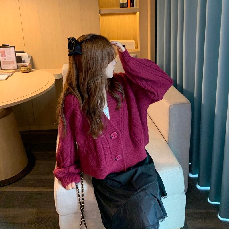 カーディガン セーター トップス 長袖 ロングスリーブ 厚め 暖かい 秋 冬 コレクション フロントボタン かわいい ショート丈 ショート カジュアル お呼ばれ 着回し 重ね着 普段着 普段使い 初秋 新作 セーターレディース ルーズ ジャケット Vネック レトロ レイジー カーディガンジャケット プチプラ ランキング キュート お勧め インスタ ワンサイズ ブルー ホワイト ライトパープル ワイン お出かけ デート ショッピング ドライブ 旅行 大人かわいい 大人女子 10代 20代 30代 40代