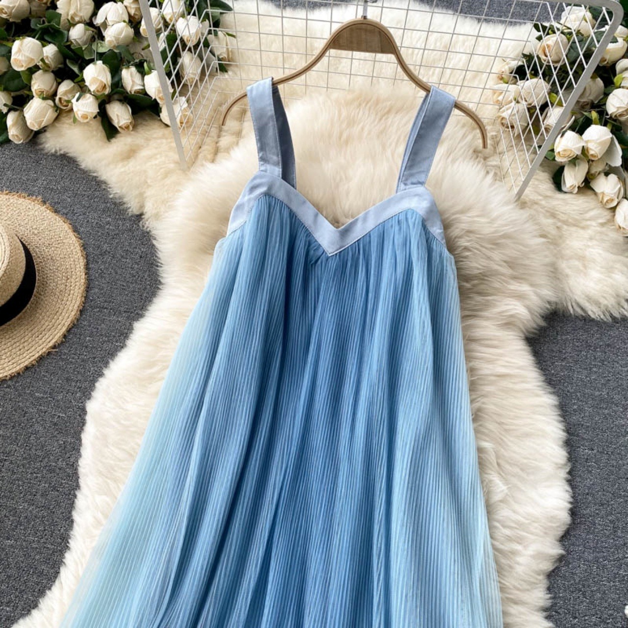 ワンピース レディース ドレス キャミワンピ 袖なし ノースリーブ Iライン シフォン サテン プリーツ チュール グラデーション 裏地 バックボタン 膝丈 ゆれ感 透け感 シースルー 異素材 大人可愛い かわいい フェミニン 上品 オシャレ きれいめ シンプル キュート こなれ感 6カラー 無地 グリーン ブルー イエロー レッド パープル ブラック カラー豊富 ワンサイズ 学生 OL 休日 イベント お出かけ パーティー 結婚式 披露宴 謝恩会 セレモニー ファッション スタイル おすすめ モテ