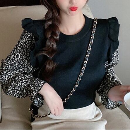 トップス 長袖 ロングスリーブ トップ 花柄 フラワー 切り替えし デザイン かわいい カジュアル お呼ばれ 着回し 重ね着 大人かわいい 普段着 普段使い 長袖シャツ 秋 冬 新しい セクション ツーピースステッチ フローラル ルーズ ニットシャツ 秋冬コレクション お出かけ デート ディナー ドライブ 旅行 通勤 通学 10代 20代 30代4 0代 50代 プレゼント お祝い 誕生日 パーティー 大人クール 大人 フェミニン 上品 モダン 学生 フリル ワンサイズ ブラウン ブラック アプリコット