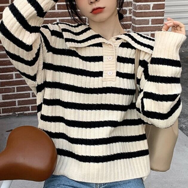 ニット セーター 長袖 ロングスリーブ シマシマ ストライプ ホワイト ブラック 秋 冬 トレンディ インポート プチプラ ランキング 大人かわいい トレンド 流行 大人女子 S M L XL レトロ 今風 インポート 大人クール カジュアル お呼ばれ 着回し 重ね着 外出 旅行 ドライブ 10代 20代 30代 40代 50代 新しいスタイル ストライプセーター 女性 レディースファッション レディース ヘッジ ウエスタンスタイル ルーズ アウター ルーズウェア 海外ファッション 婦人服 お勧め クール