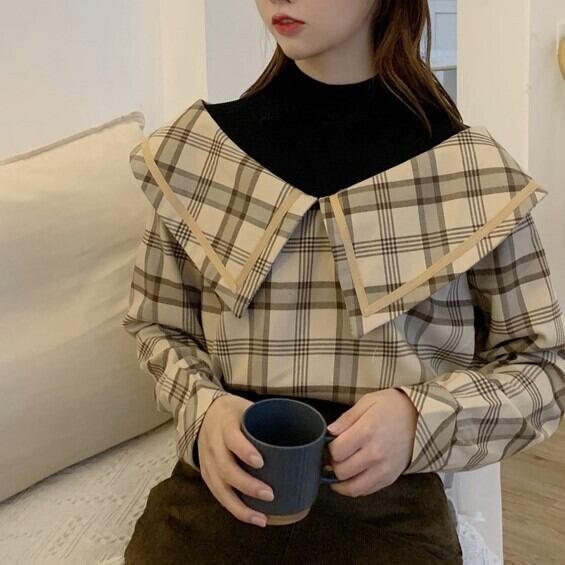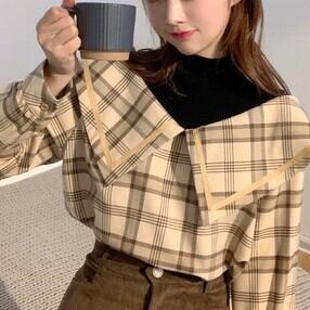 フェイクツーピース チェック柄 トップス トップ襟付き アッパー 婦人服 レディース レディースファッション 秋 冬 レトロ 今風 トレンディ インポート プチプラ ランキング 大人かわいい 上品 モダン 大人クール デザイン センス ニッチ 新スタイル 長袖 シャツ オシャレ インポート プチプラ ランキング 大人綺麗 お出かけ デート ディナー ドライブ デート 外出 旅行 ショッピング 買い物 インポート リゾート キャンプ ママ 二次会 イベント シンプル 人形襟 海外ファッション 人気