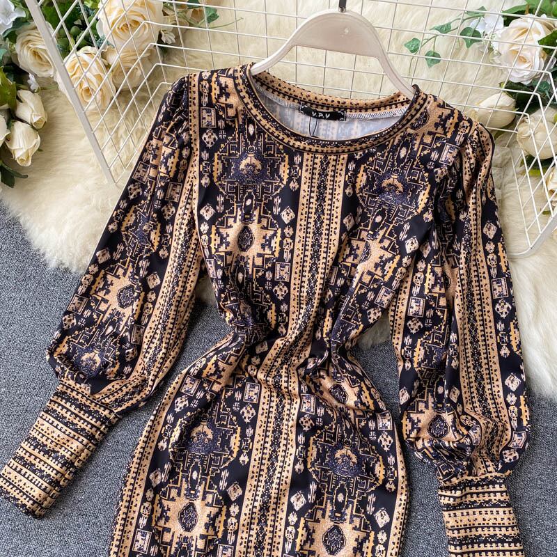 ワンピース レディース フレアワンピース ショート丈 長袖 柄 プリント 春 秋 セミフレア スリム 細身 Aライン シフォン かわいい 大人可愛い きれいめ シンプル カジュアル 大人 上品 おしゃれ お洒落 レトロ 大人可愛い 大人女子 個性的 セクシー エレガント モダン ラウンドネック ショート 袖あり くすみカラー 大人カラー ワンサイズ 20代 30代 デート お出かけ パーティー イベント 着回し 韓国 韓国系 オルチャン ファッション コーデ スタイル 新作 トレンド 流行 インスタ映え