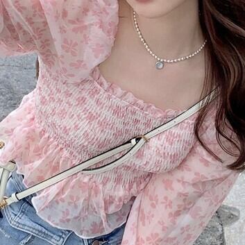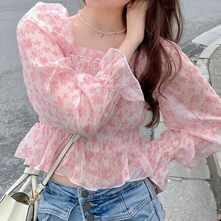 花柄ブラウス 花柄 フラワープリント トップス トップ ブラウス シャツ ピンク ワンサイズ カジュアル お呼ばれ 着回し 重ね着 クール 大人可愛い オシャレ インポート プチプラ ランキング 大人女子 フレンチ ウエスト ショート トップレディース デザイン センス ニッチ 秋 冬 スーパーフェアリー フローラル 長袖シャツ パフスリーブロングスリーブ 婦人服 レディースファッション レディース お出かけ お呼ばれ ショッピング デート ディナー ドライブ インスタ映え インスタ 映える リゾート 海