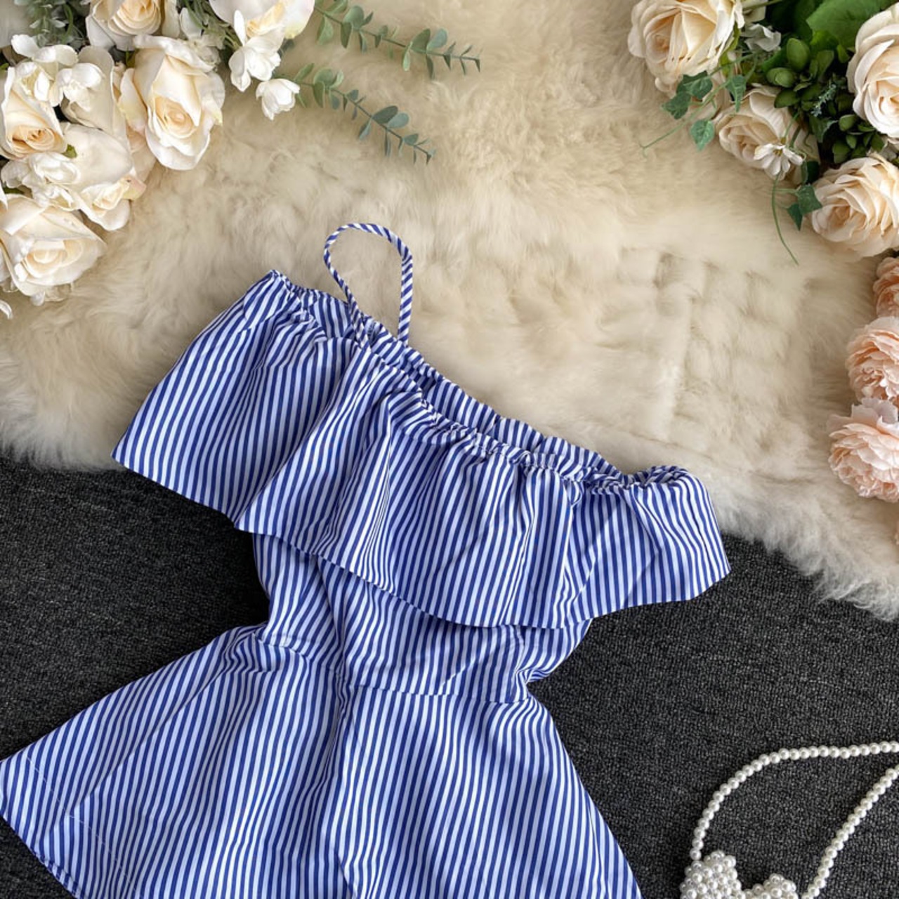 トップス レディース シャツ ブラウス ワンショルダー 袖なし ノースリーブ スリム 細身 ファスナー フリル かわいい きれいめ シンプル カジュアル 大人可愛い 大人 上品 おしゃれ かっこいい 大人女子 こなれ感 ラフ ラブリー キュート ガーリー10代 20代 30代 OL 通勤 学生 通学 デート お出かけ 女子会 パーティー イベント リゾート 着回し 普段使い 重ね着 韓国系 オルチャン ファッション コーデ スタイル 楽ちん モテ インスタ映え ブルー ホワイト ストライプ ウエストリボン