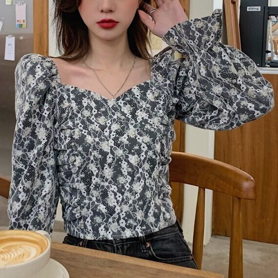 花柄 フラワー プリント トップス トップ ショート丈 ショート パフスリーブ 長袖 ロングスリーブ フリル 秋 冬 レディースファッション レディース レトロ 今風 トレンディ インポート プチプラ ランキング 大人かわいい カジュアル お呼ばれ 着回し 重ね着 普段着 普段使い フレンチ ショート ブラウス レディース レディースファッション デザイン センス ニッチ 新作 トレンドトレンディ人気 レスタイル スクエアネック 長袖シャツ 通勤 通学 10代 20代 デート かわいい おしゃれ シンプル