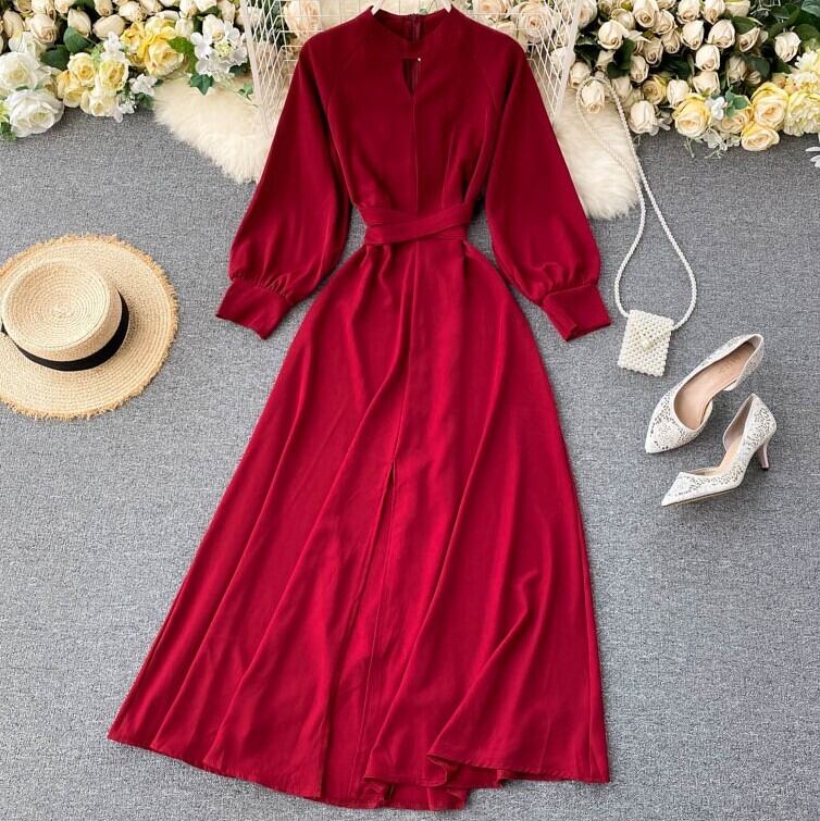 ハイウエストロングワンピース パフスリーブワンピース リボンベルト 無地ワンピース ハイウエスト 無地 長袖 Aラインスカート ハイウエスト無地ドレス 長袖ワンピース ホームパーティー 買い物 デート リボンベルト 20代 30代 40代 パーティー オータムワンピース ハイウエストロングドレス 無地Aラインスカート 長袖ドレス 秋服 パフスリーブ 秋 オータム ハイウエストロングドレス 女子会 デート エレガント 無地パフスリーブロングドレス オータム無地ワンピース ドレス パフ無地ドレス オータム無地