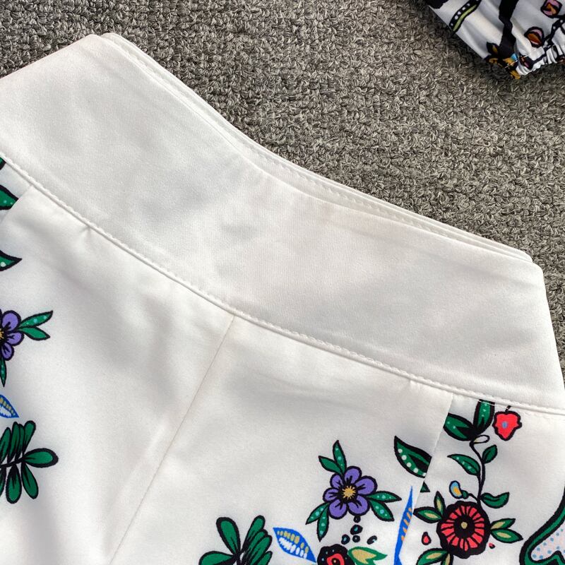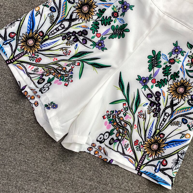 ツーピース 上下セット セット パフスリーブ 長袖 ロングスリーブ ショート パンツショート 短パン 花柄プリント フラワープリント ホワイト カラフル柄 パーティー イベント かわいい カジュアル お呼ばれ 着回し 重ね着 おススメ オルチャン 韓国デザイン 海外ファッション 秋 冬 コレクション 大人かわいい インスタ映え インスタ 映え 映える レディースファッション Vネック ランタンスリーブ プリント ハイウエスト ショート シャツ ウエスタンスタイル ツーピーススーツ ハイウエストワイドレッグ
