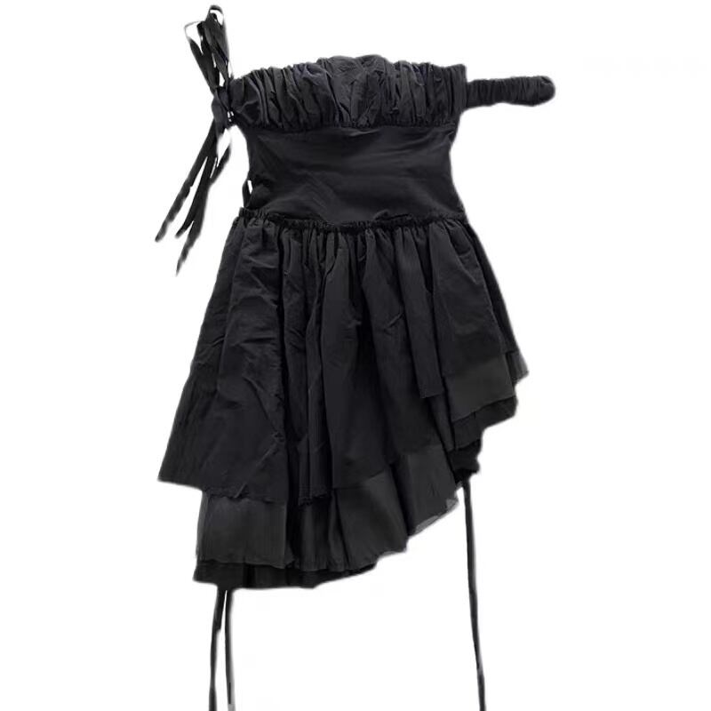 ワンピース レディースドレス ティアードワンピース 切りっぱなし ミニスカート ミニ丈 ショート丈 袖なし ノースリーブ ワンショルダー 襟なし ギャザー レース ウエストマーク リボン ドレープ ハンカチーフヘム アシンメトリー 黒 ブラック 白 ホワイト かわいい 大人可愛い 大人 大人女子 きれいめ おしゃれ お洒落 ラブリー キュート ガーリー フェミニン 10代 20代 お出かけ 女子会 休日 カジュアル ゴージャス 華やか インパクト こなれ感 セクシー 披露宴 パーティー イベント