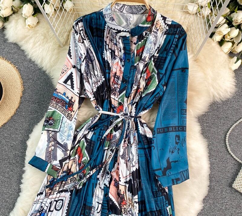 ワンピース レディース フレアワンピース ロング丈 プリーツ 袖あり 長袖 スタンドカラー 襟あり スリム フレア 細身 前開き かわいい 大人可愛い きれいめ 大人 上品 ラブリー キュート おしゃれ 大人女子 こなれ感 エレガント ウエストリボン 二次会 披露宴 10代 20代 30代 OL 通勤 学生 通学 デート お出かけ 女子会 パーティー イベント リゾート 韓国系 オルチャン ファッション コーデ スタイル モテ 体系カバー 脚長 インスタ映え ブルー ネイビー ブラウン ブラック ピンク