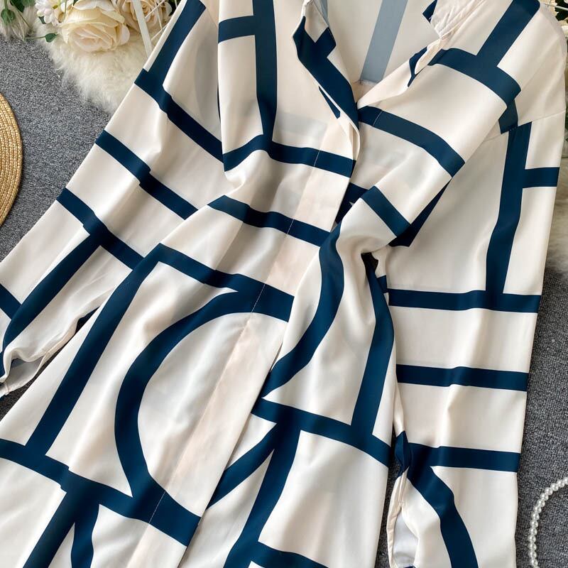 ワンピース レディース Aラインワンピ プリント柄 幾何学模様 ストライプ ドロップショルダー 長袖 前開き 裾フレア Aライン サイドスリット 大人女子 大人可愛い 上品 シンプル クール オシャレ お洒落 こなれ感 きれいめ フォーマル オケージョン フォーマル 10代 20代 30代 学生 OL 通勤 ママ 休日 お出かけ デート 食事会 女子会 ショッピング お呼ばれ イベント ホームパーティー 着回し 普段使い ファッション スタイル コーデ 重ね着 レイヤード 韓国系 モテ おすすめ 人気