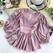 トップス レディース ブラウス 袖あり 長袖 パフスリーブ 襟なし Vネック スリム ファスナー かわいい きれいめ シンプル カジュアル 大人可愛い 上品 おしゃれ かっこいい 大人女子 こなれ感 ラフ ラブリー キュート ガーリー 10代 20代 30代 OL 通勤 学生 通学 デート お出かけ 女子会 パーティー イベント リゾート 着回し 普段使い 重ね着 韓国系 ファッション コーデ スタイル 楽ちん モテ インスタ映え レッド イエロー ブラック グリーン ホワイト ピンク ウエストマーク