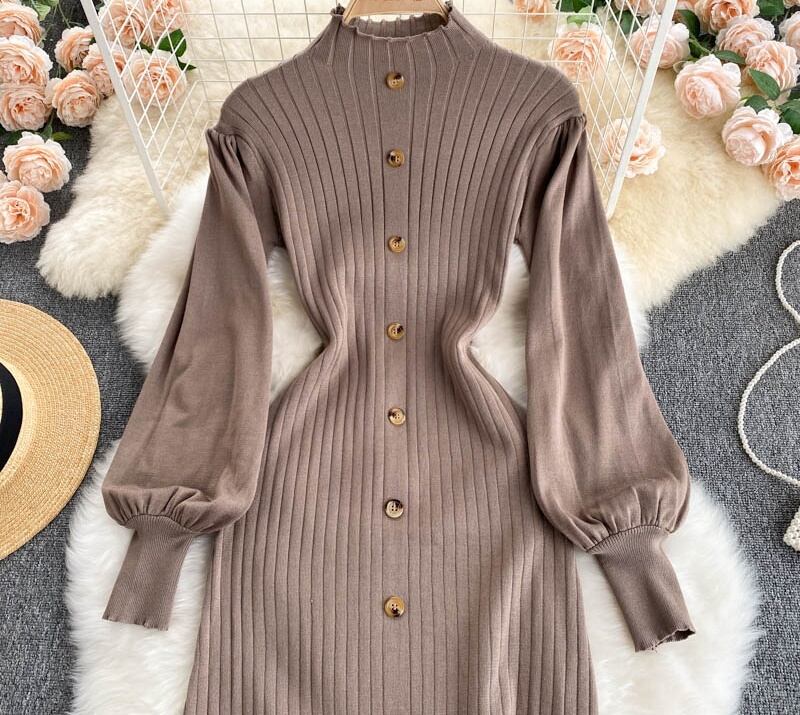 ワンピース レディース フレアワンピース ミドル丈 袖あり 長袖 パフスリーブ スタンドカラー 前開き ハイウエスト リブ フレア かわいい 大人可愛い きれいめ 大人 上品 キュート おしゃれ 大人女子 こなれ感 エレガントセクシー 結婚式 二次会 披露宴 10代 20代 30代 OL 通勤 学生 通学 デート お出かけ 女子会 パーティー イベント リゾート 韓国系 オルチャン ファッション コーデ スタイル モテ 体系カバー脚長 インスタ映え ピンク ブルー パープル カーキ ブラウン ブラック