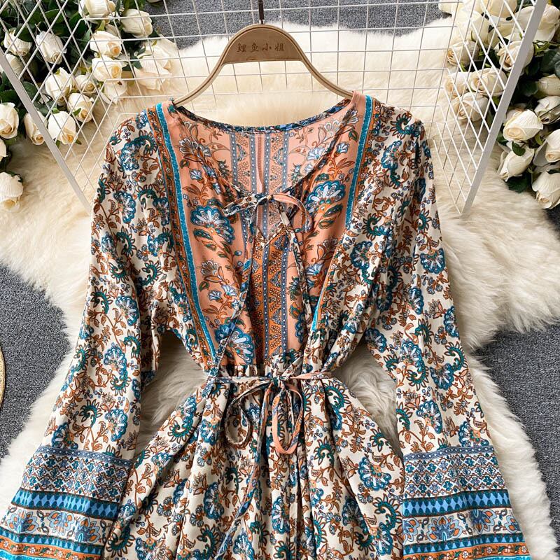 レディース長袖ワンピース ハイウエスト Aラインドレス 20代 30代 40代 ホームパーティー 花柄 オータムドレス ワンピース 秋ワンピース 花柄長袖ワンピース Vネックひも付きワンピース 秋 オータム 婦人ワンピース 婦人 チャーミング 長袖柄物ワンピース レッドワンピース 花柄ミドルスカート 婦人ハイウエスト秋ワンピース 花柄 柄物オータムドレス 買い物 デート パーティー リゾート 長袖柄物スカート Vネック柄物ドレス オータムワンピ ハイウエストプリントワンピース 秋物婦人ワンピースドレス