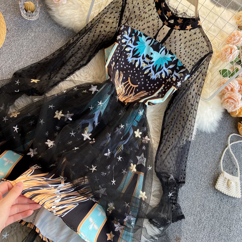 ワンピース レディース フレアワンピース ミモレ丈 長袖 柄 刺繍 春 冬 スリム 細身 Aライン シフォン ファスナー 透け感 シースルー 伸縮性 かわいい 大人可愛い きれいめ シンプル カジュアル 大人 上品 おしゃれ お洒落 大人可愛い 大人女子 個性的 主役級 存在感 マキシ 袖あり 黒 ブラック M L XL 2XL 20代 30代 女性用 デート お出かけ 女子会 休日 パーティー イベント 韓国 韓国系 オルチャン コーデ スタイル モテ 新作 定番 トレンド 流行 インスタ映え