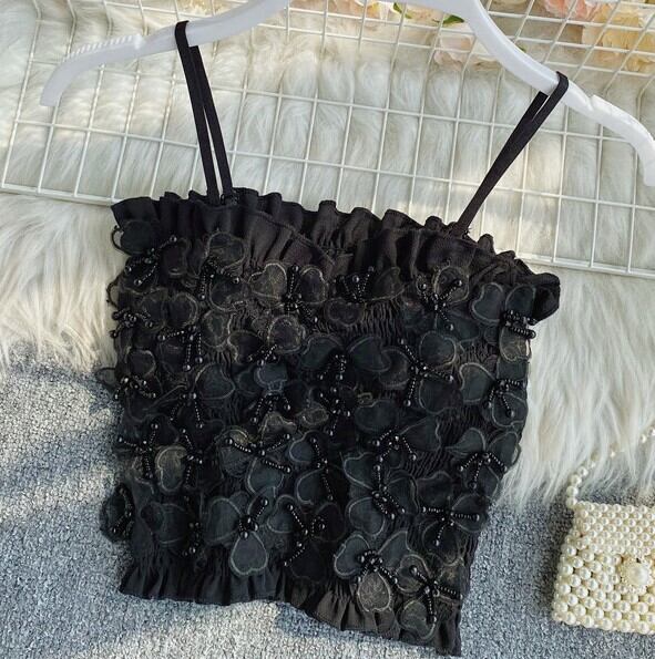 キャミソール チューブトップ ベアトップ フラワーレースキャミソール 10代 20代 30代 40代 ホームパーティー リゾート ビーズ 花レースキャミソール パーティー レディースストラップブラウス キャミソールレース タンクトップ ビーズキャミソールブラウス ストラップビーズブラウス ショートブラウス ミニ丈 シャーリングキャミソール ノースリーブ ピンク ホワイト ブラック 花レースキャミソーフラワーレースショートブラウス ショート ミニ シャーリング ルブラウス 3色ブラウス ベアトップブラウス