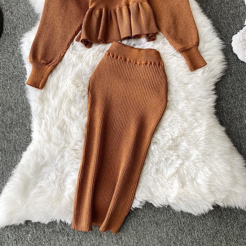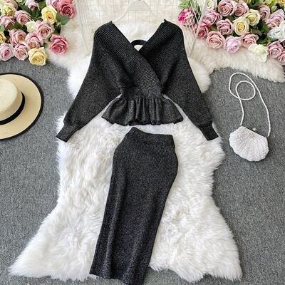 セット 上下 セットワンピース ワンピ トップス フリル トップ スタイトワンピース 秋 冬 新作 韓国版 長袖 Vネック オープンバック ブライトシルク ニットセーター ハイウエストスカート バッグヒップスカート ツーピーススーツ トレンド トレンディ シンプル 流行 人気 オルチャン 韓国デザイン 海外ファッション 普段使い カジュアル お呼ばれ 着回し 重ね着 OL 通勤 会社 20代 30代 40代 ゴージャス お呼ばれ パーティー イベント ハウスパーティー 暖かい コレクション 大人かわいい