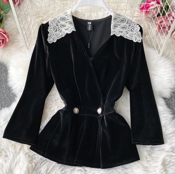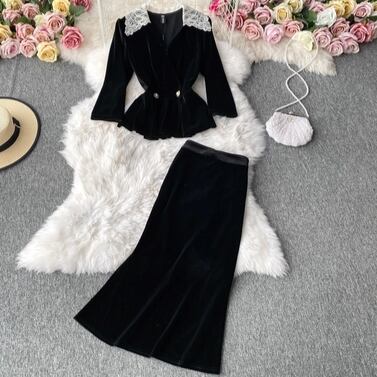 ベルベットスーツ 長袖無地 ベルベットスカート スーツ ベルベット ベッチン スカート ジャケット 黒 ホームパーティー 2o代 30代 40代 レディースベルベットスーツ デート 買い物 通勤 パーティー Aラインスカート 長袖無地スーツ 秋冬 ウインタースーツ ベルベットジャケット レース襟 Vネックベルベットスーツ Vネック 前ボタン オータムスーツ 婦人スーツ ベルベットAラインスカート 冬用ベルベット 長袖ジャケットスーツ 秋服 冬服 ブラックベルベットスーツ スカートとジャケット 長袖冬