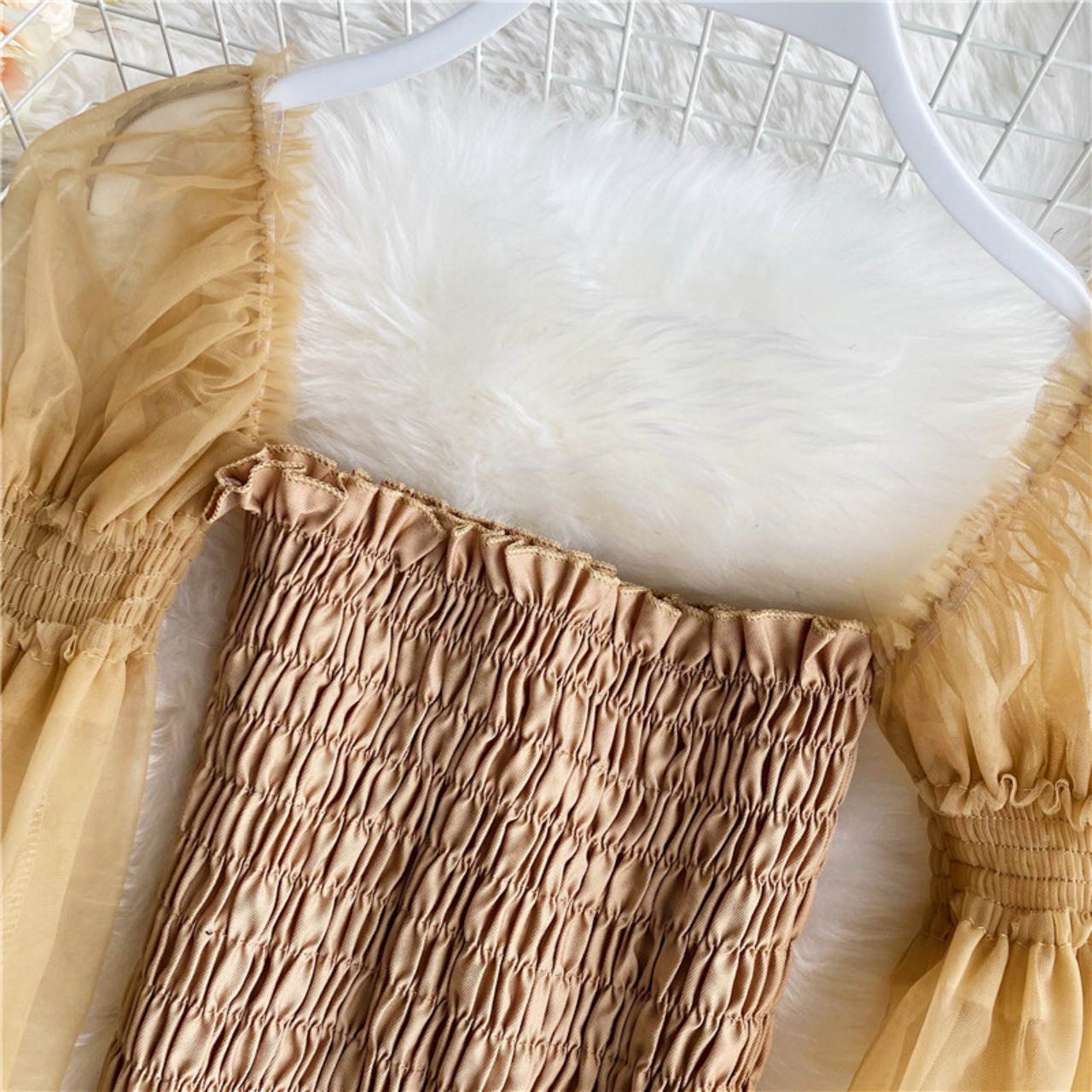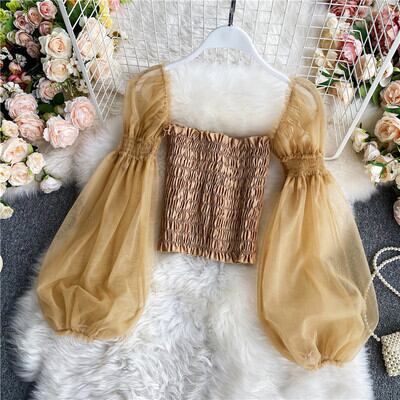 ブラウス シャツ トップス トップ パフスリーブ 長袖 ロングスリーブ シック モダン モード系 かっこいい ラグジュアリー ショート丈 ショート シースルー 透け感 メッシュ シャーリング スクエアネック 秋 冬 トレンディ インポート プチプラ ランキング 大人かわいい ワンサイズ ブラック ピンクグリーン ホワイト ライトブラウン 春 秋 冬 新作 スウィートメッシュ シャツレディース ウエスタンスタイル ワンラインネック ストラップレス ショートランタン スリーブトップ かわいい メンズライク