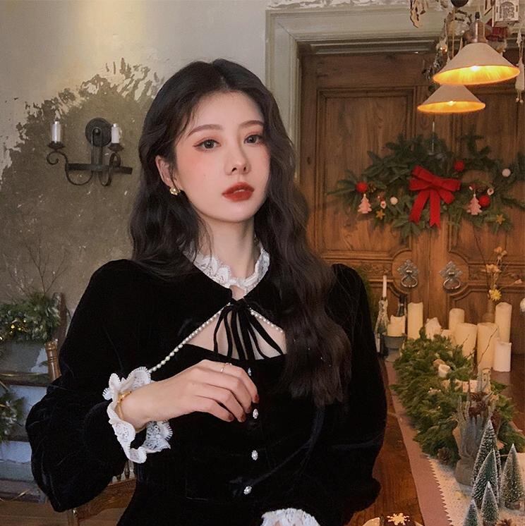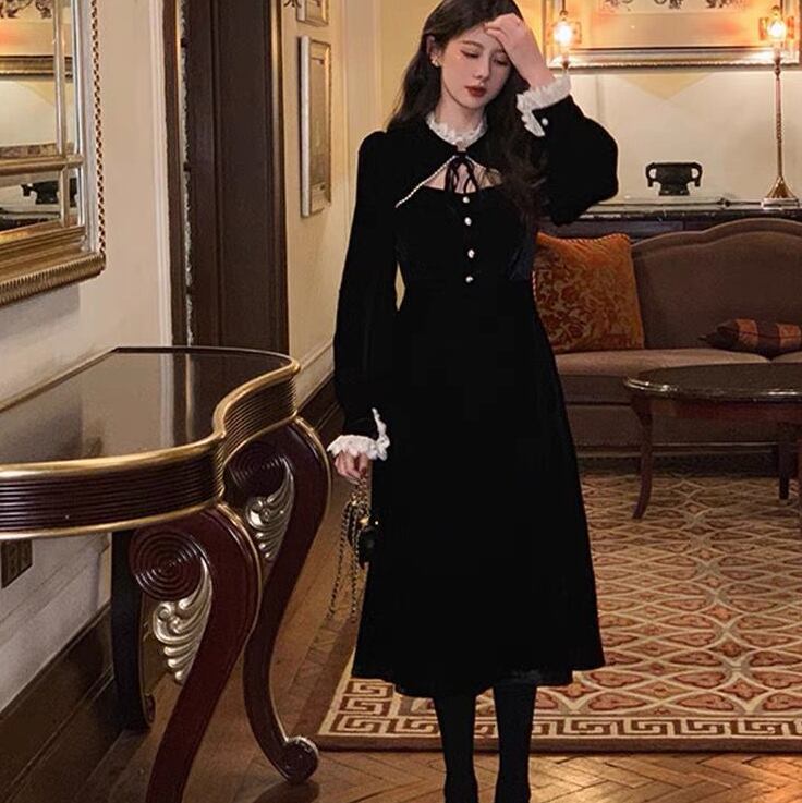 ワンピース レディース ワンピドレス ロングスカート フレアスカート ロング丈 ロング 袖あり 長袖 フリルカラー レース 刺繍 リボン ボタン ベルベット ビジュー 大人カラー モノトーン 黒 ブラック ヨーロピアン かわいい 大人可愛い 大人 大人女子 きれいめ おしゃれ お洒落 シンプル ラブリー キュート ガーリー 10代 20代 30代 通勤 学生 通学 デート お出かけ 女子会 休日 イベント 普段使い カジュアル こなれ感 上品 エレガント フォーマル 結婚式 二次会 披露宴 パーティー