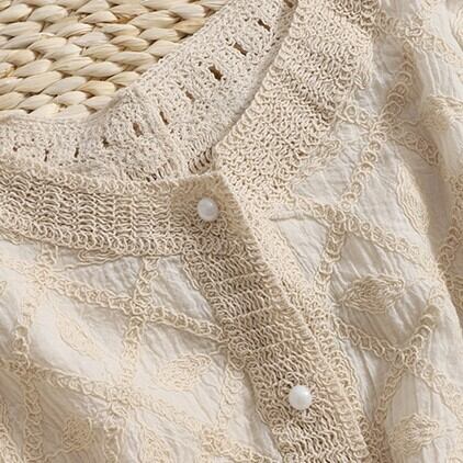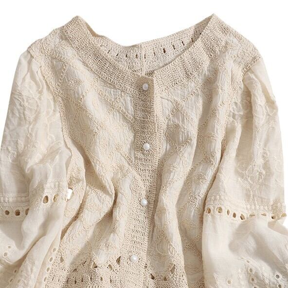 トップス トップ ブラウス シャツ 刺繍 パフスリーブ 長袖 ロングスリーブ シャーリング シンプル ラウンドネック フロントボタン 襟なし 秋 冬 トレンド トレンディ シンプルファッション ホワイト アプリコット ワンサイズ かわいい おしゃれ パンチング カジュアル ストリート お出かけ 買い物 インポート 海外ショッピング レディースファッション 婦人服 飲み会 合コン 女子会 ママ 通勤 OL 韓国デザイン オルチャン オールマッチ 刺繡パフスリーブシャツ シャツ秋 新作 薄手 普段使い 着回し