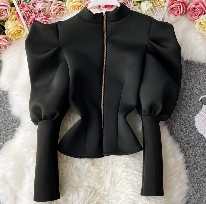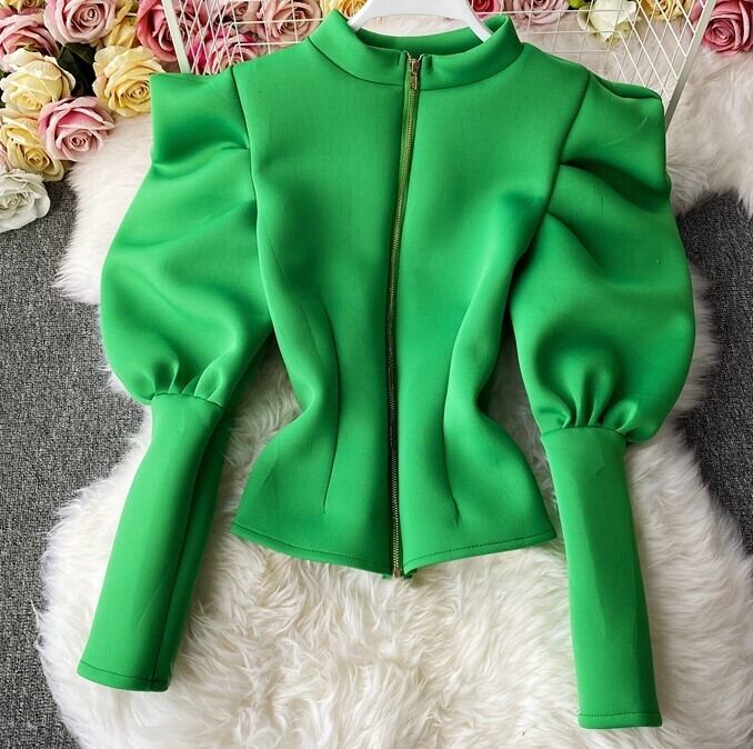 レディース長袖ブラウス 長袖 通勤 長袖ブラウス ブラウス 10代 20代 30代 グリーン ホワイト ブラック レッド 長袖無地 シャツ ショートシャツ 買い物 女子会 ホームパーティー 4色シャツ 長袖シャツ オータム長袖 秋服 デート 遊び着 長袖無地 キュート チャーミング 大人可愛い 長袖シャツ パフスリーブショートブラウス 変わり袖シャツ オータムシャツ シャツブラウス 前ファスナーブラウス 原色前ジッパー ドライブ 秋長袖シャツ スタンドカラー 婦人服 オータム長袖ブラウス ショート丈